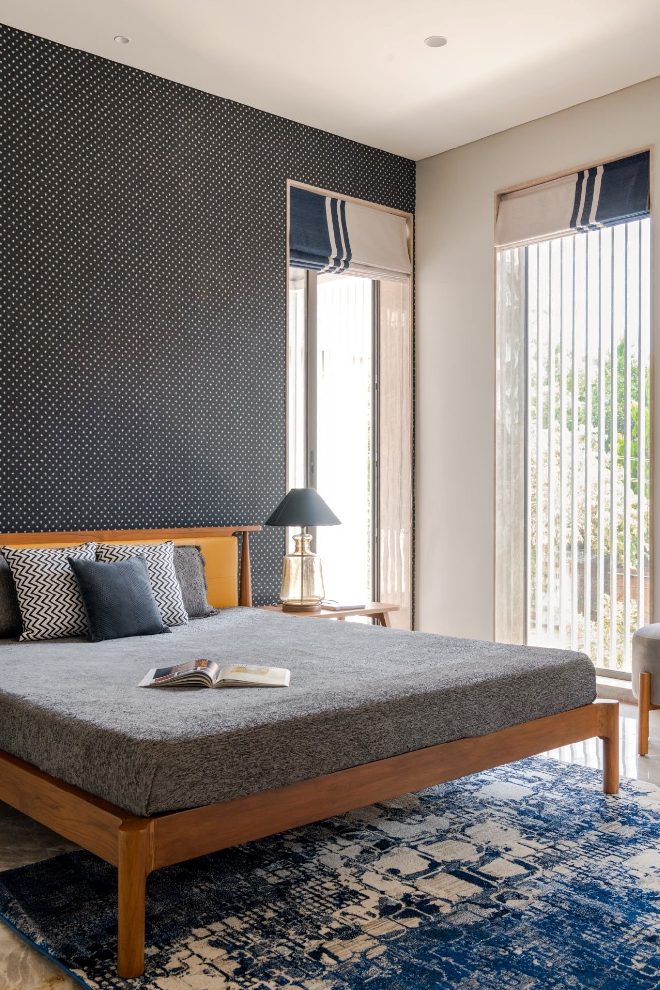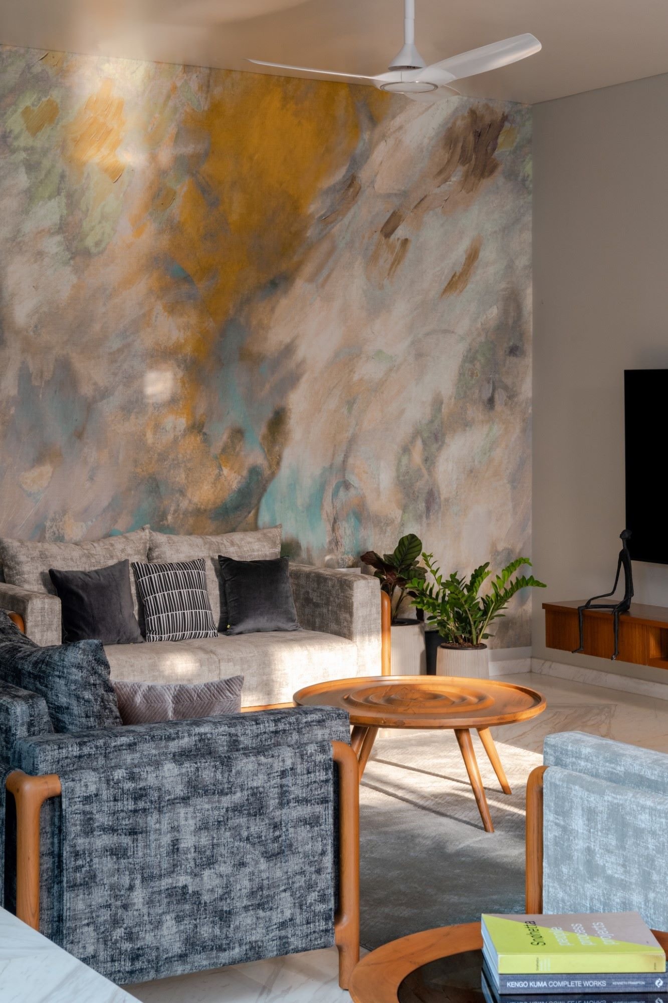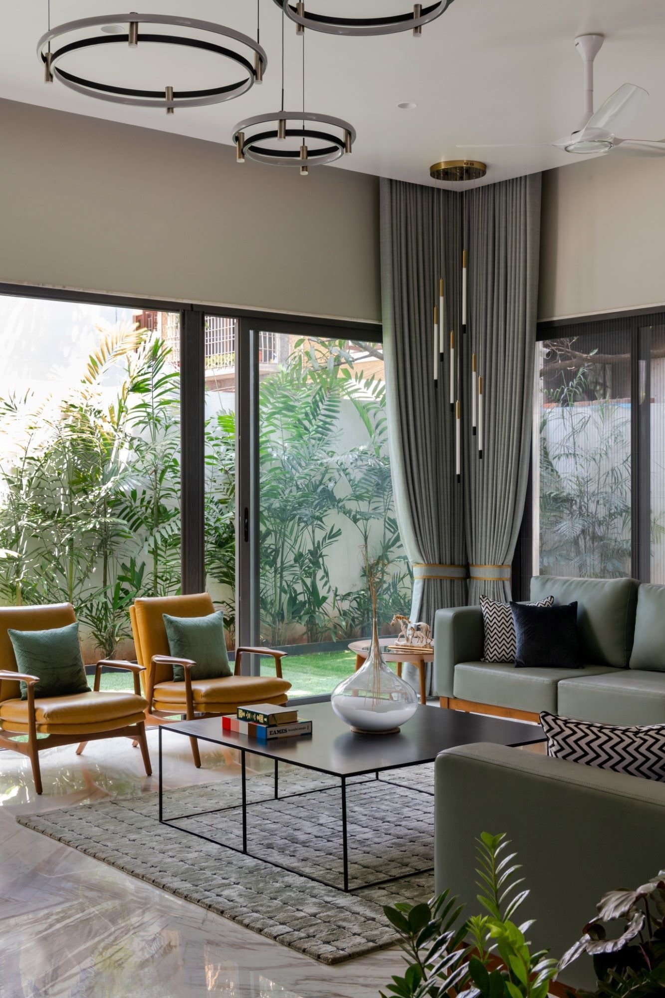 The concept emerged as an interplay between mono-functional rooms with defined functions and multi-functional interstitial spaces. The placement of core spaces, such as the kitchen, the mandir (prayer room), and the bedrooms, adhered to the tenets of Vastu Shastra, a traditional Indian architectural system, and thus occupied the extremities of the quadrants. The public and semi-public spaces, such as the living, dining, and entertainment areas, serve as the connective tissue that unifies these core spaces.